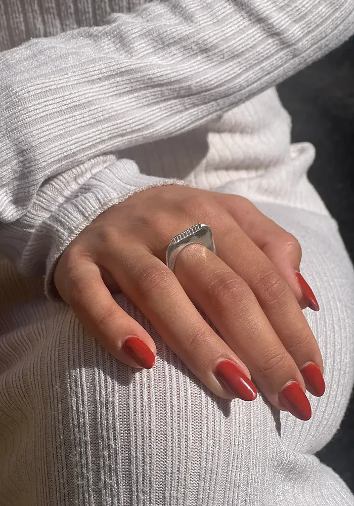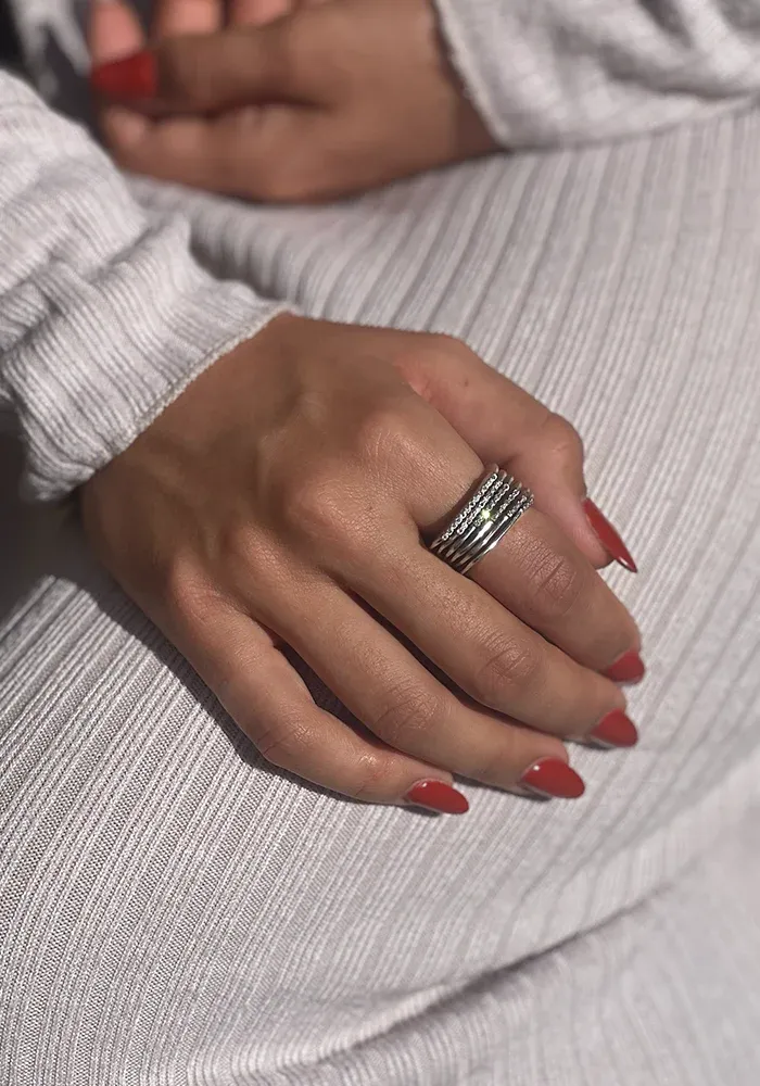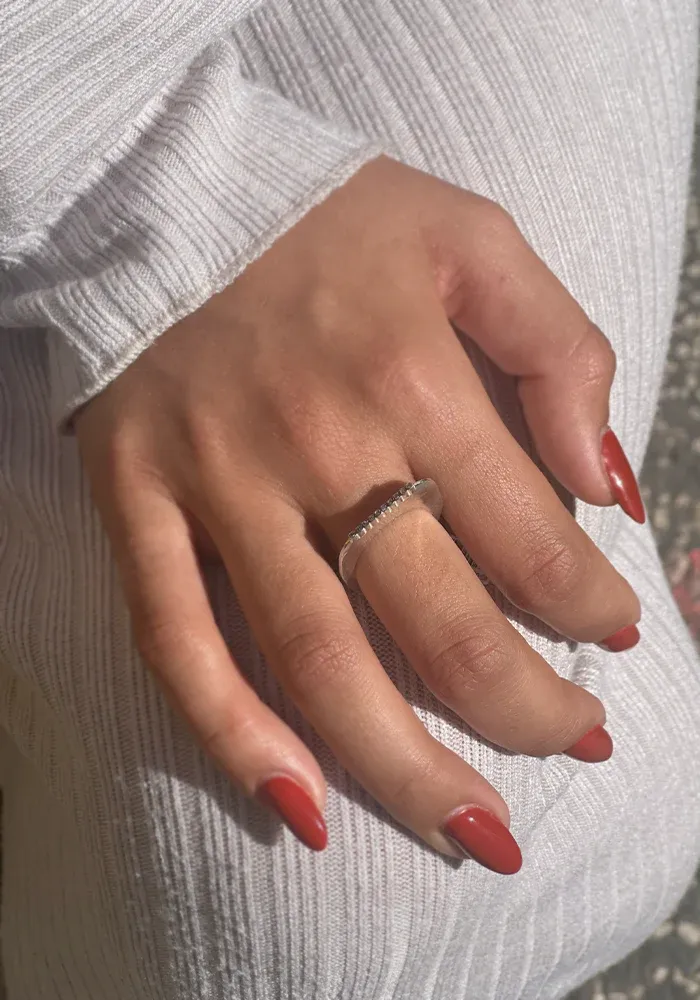 Bague Zina 10th en forme d’anneau plat en argent sterling avec une bande de 10 diamants cognacs.