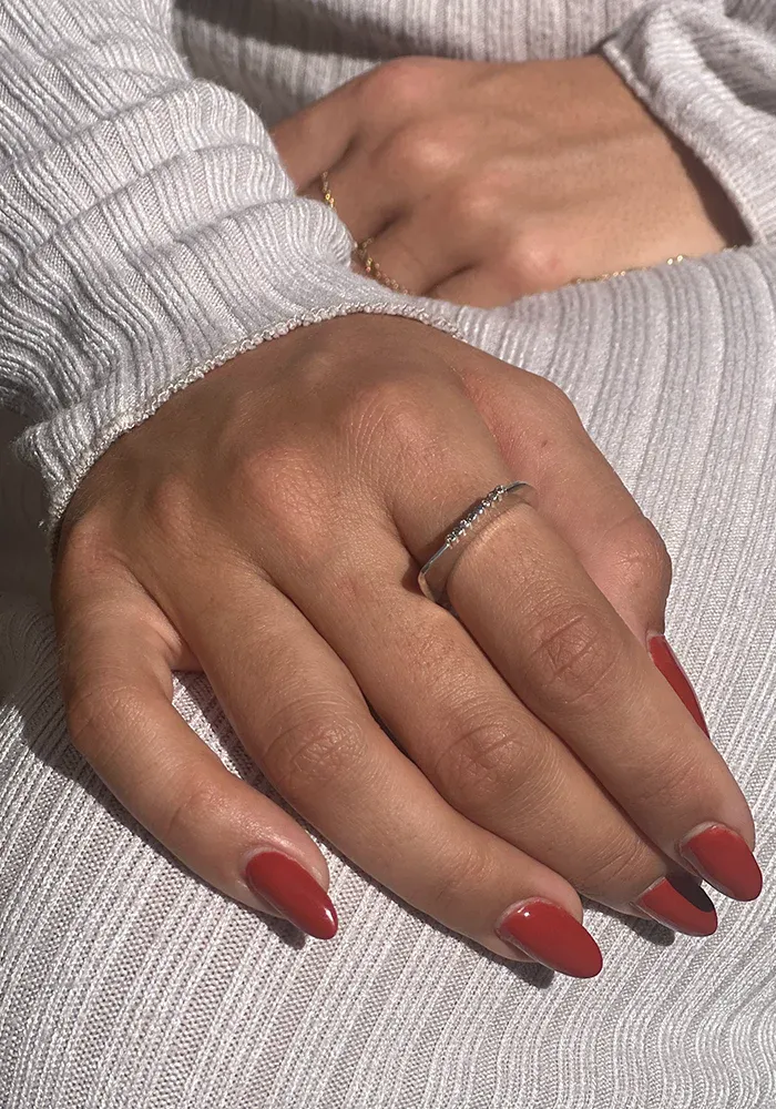 Bague Zina 8th en forme d’anneau plat en argent sterling avec une bande de 8 diamants cognacs.
