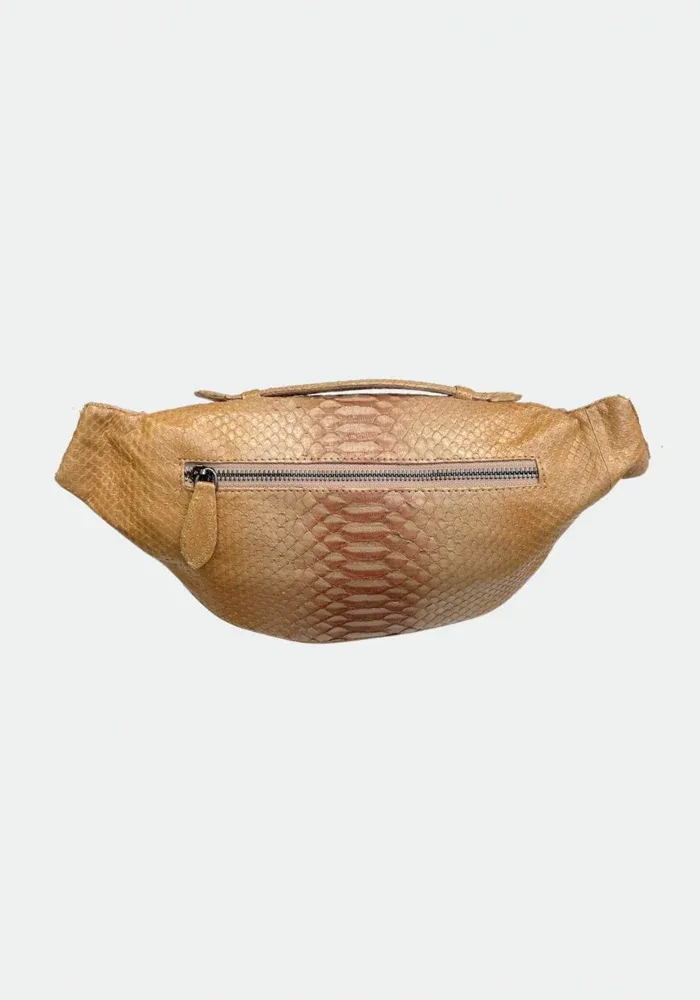 Sac banane Mike en python couleur macchiato beige.