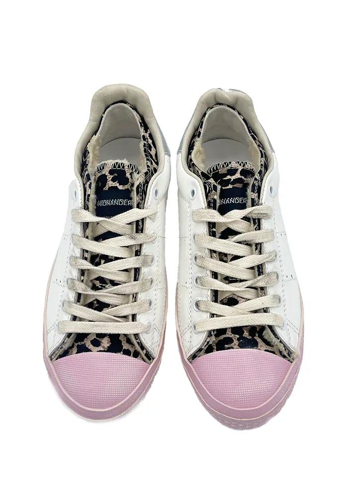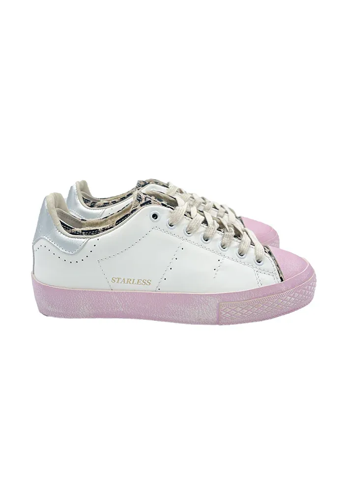 Baskets Starless avec languette léopard, une bande rose sur le contour de la semelle e et l’intérieur fourré.