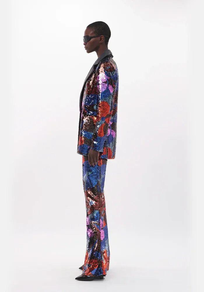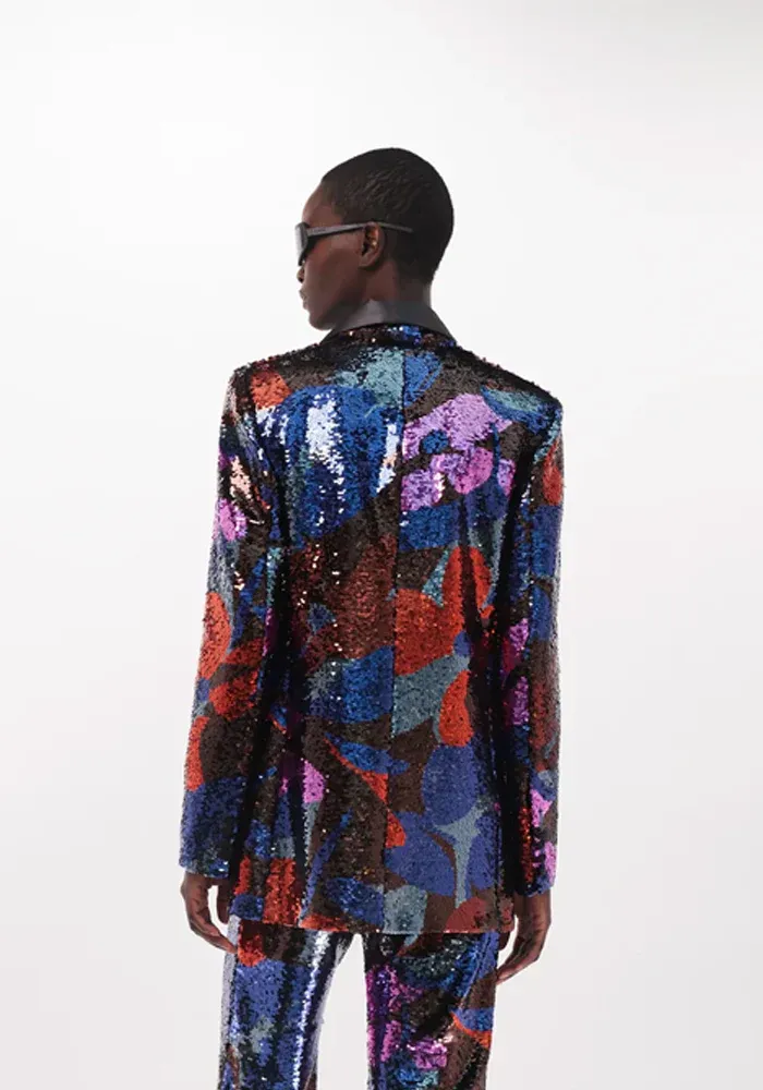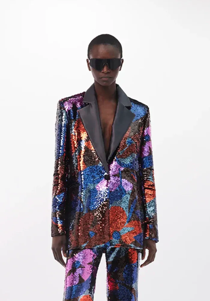 Veste Mila coupe blazer en sequin avec des motifs fleuris.