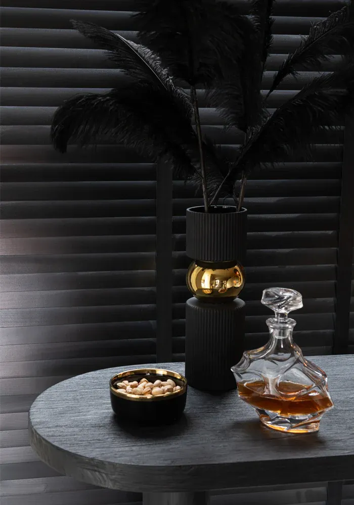 Bol en céramique noire avec le contour doré.