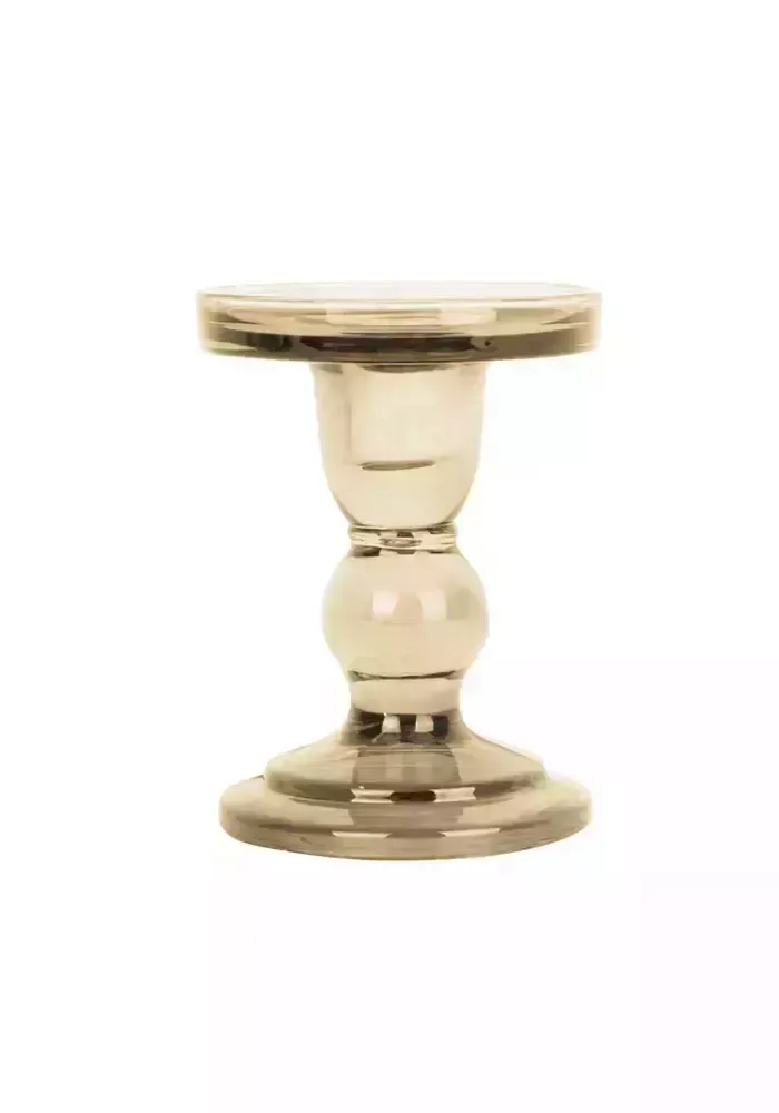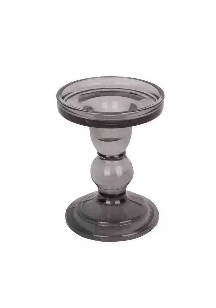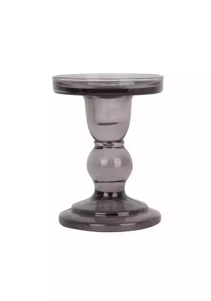Bougeoir en verre coloré sur pied pour bougie large.