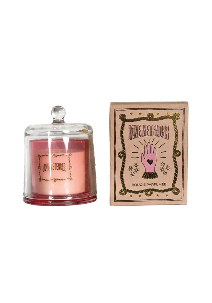 Bougie Americana Love Me Tender en verre avec une cloche.