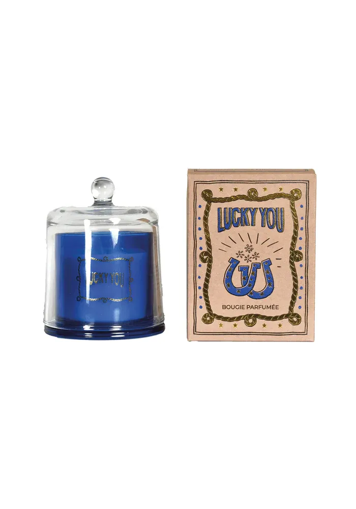 Bougie Americana Lucky You en verre avec une cloche.