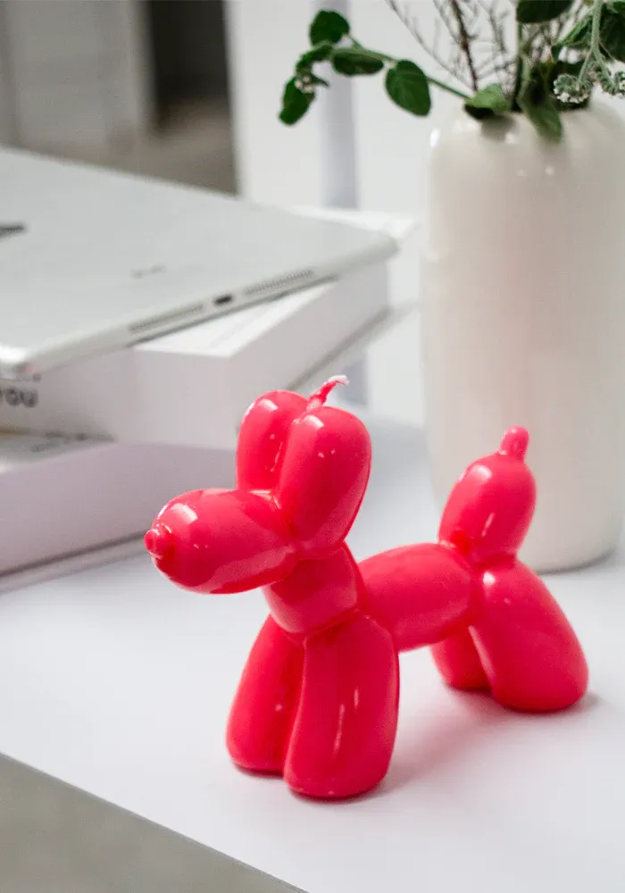Bougie en forme de chien ballon rose.