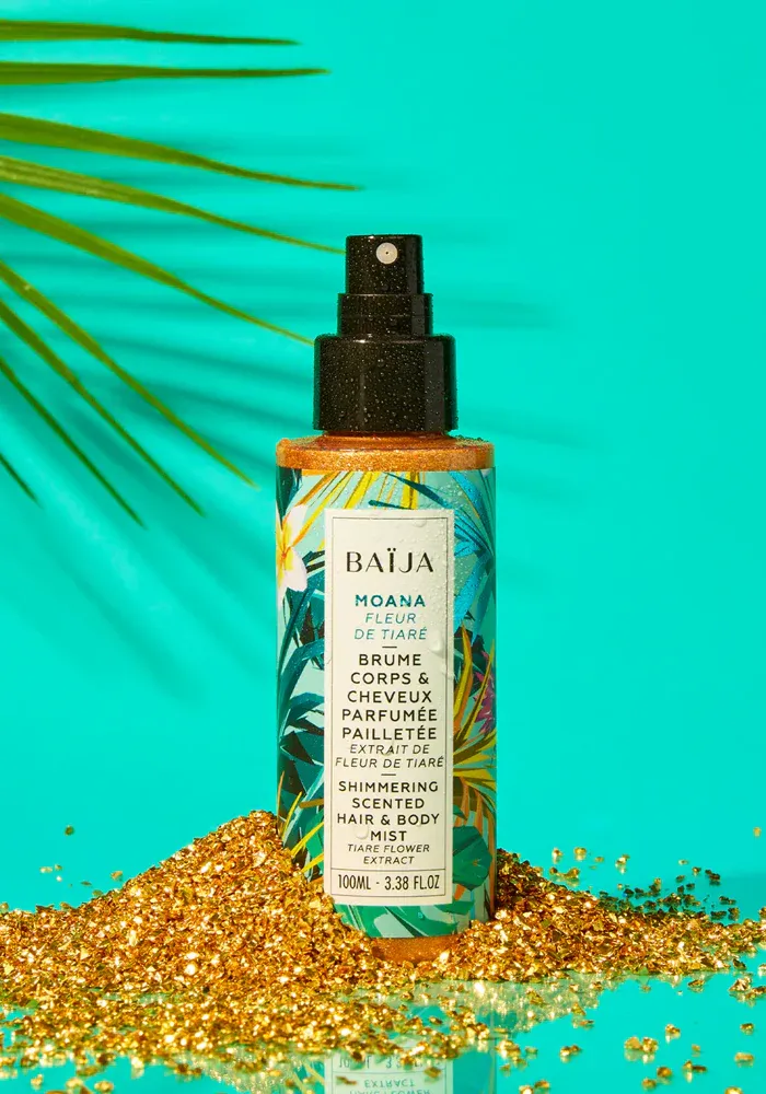 Brume pailletée pour le corps et le cheveux à la senteur Moana.