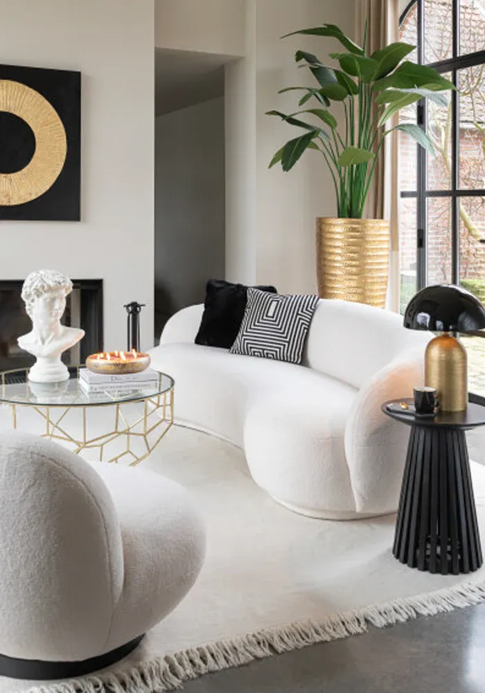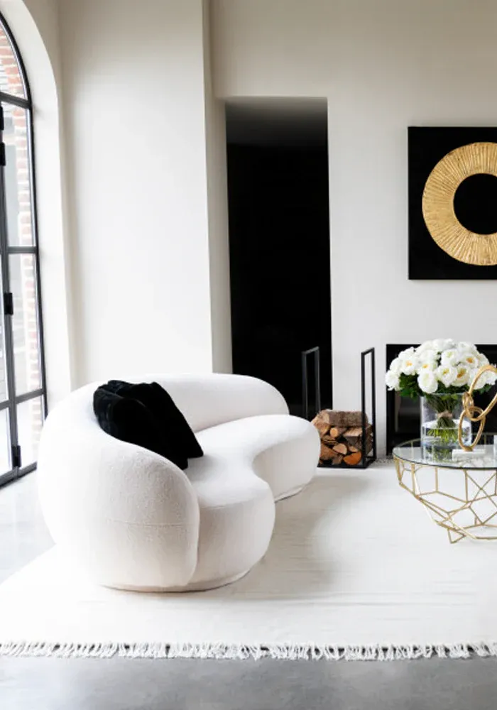 Canapé Neige arrondi en tissu mousseux blanc.