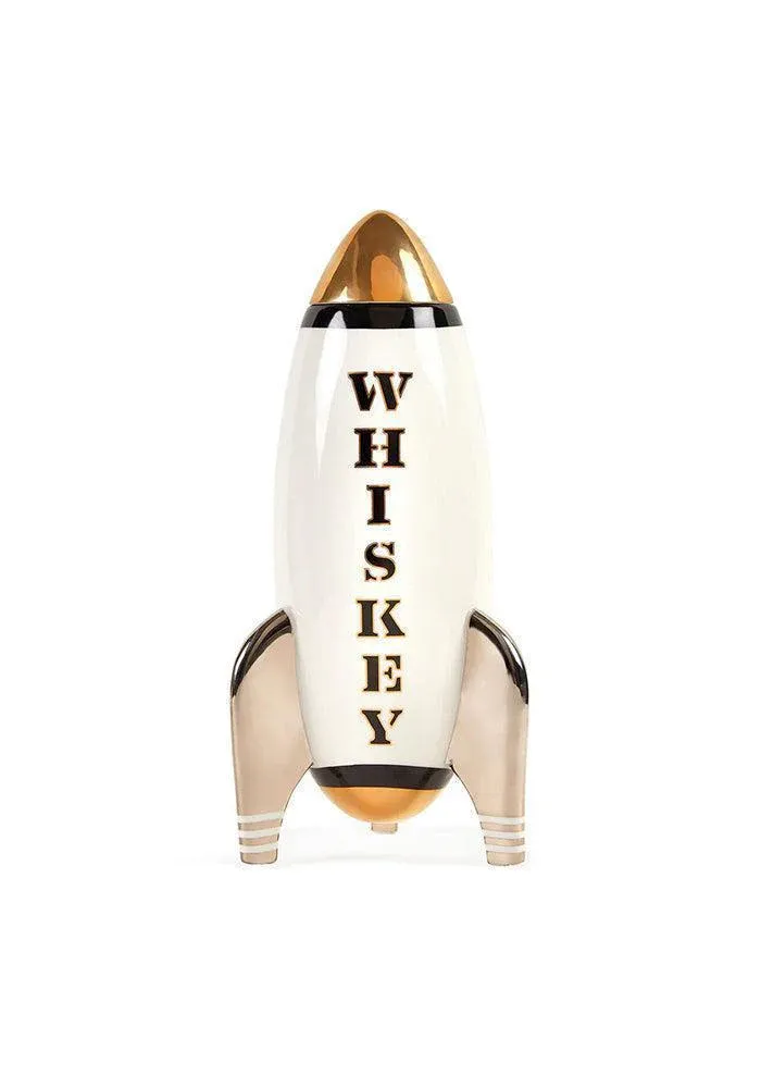 Décanteur en forme de fusée en porcelaine noir, doré et blanc avec inscription Whiskey.