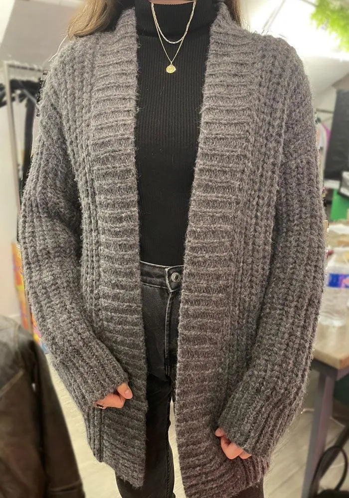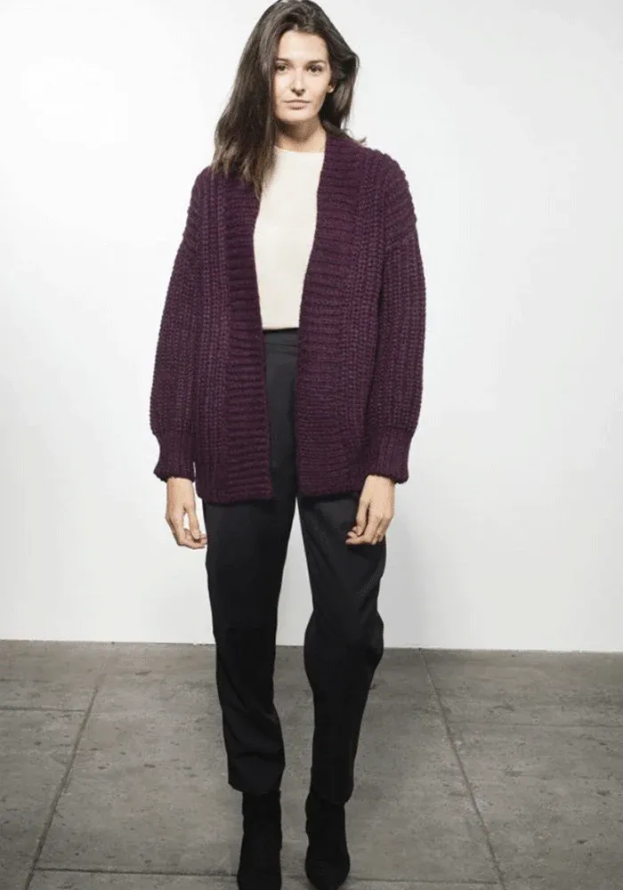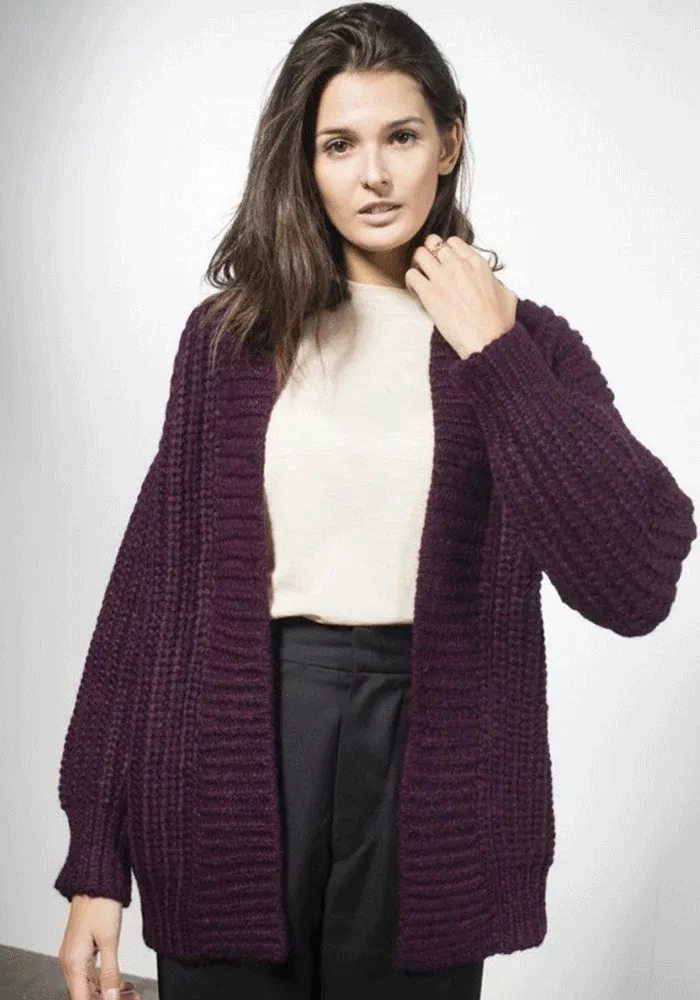 Ce cardigan tricoté main en alpaga mélangé vous accompagnera de sa douceur. Ce gilet apporte un style pratique et décontracté. Il est disponible en violet ou en gris !