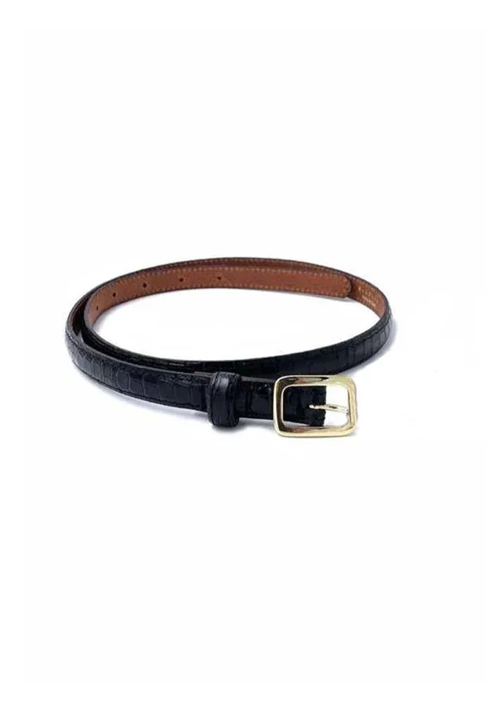 Ceinture La Babylone tout cuir effet croco avec boucle dorée.