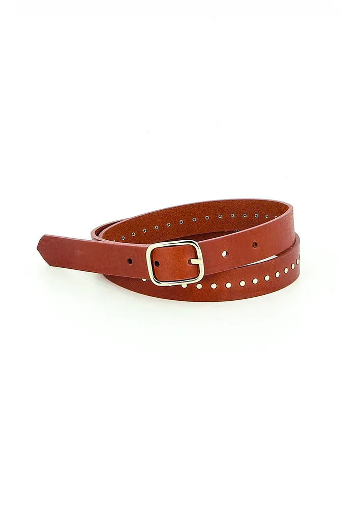 Ceinture La Boétie en cuir de vachette et boucle et clou dorés.