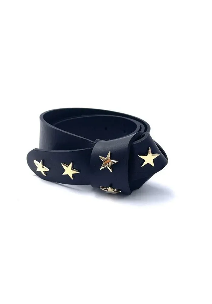 Ceinture La Renard en cuir de vachette et étoiles dorées avec un faux noeud en cuir sur le devant.