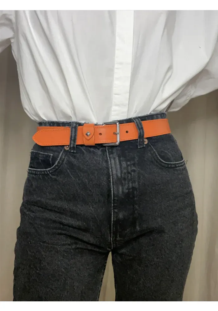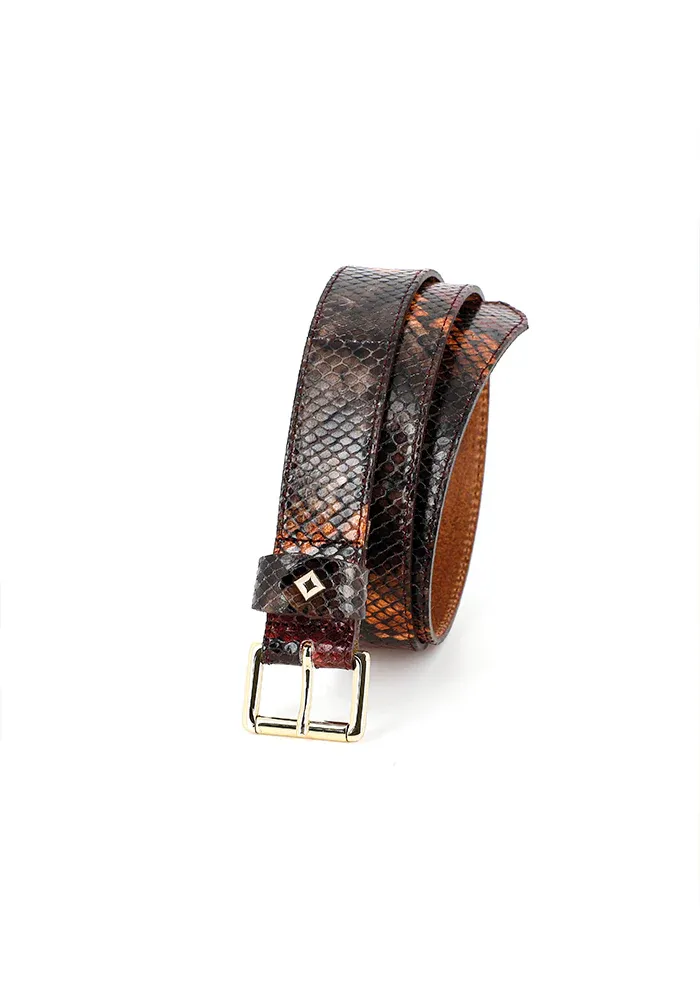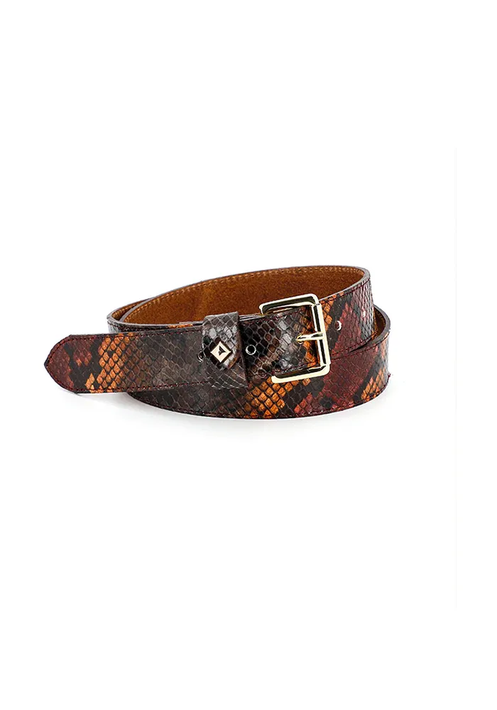 Ceinture La Turenne en cuir effet serpent d’une largeur de 30mm avec boucle et clou dorés.