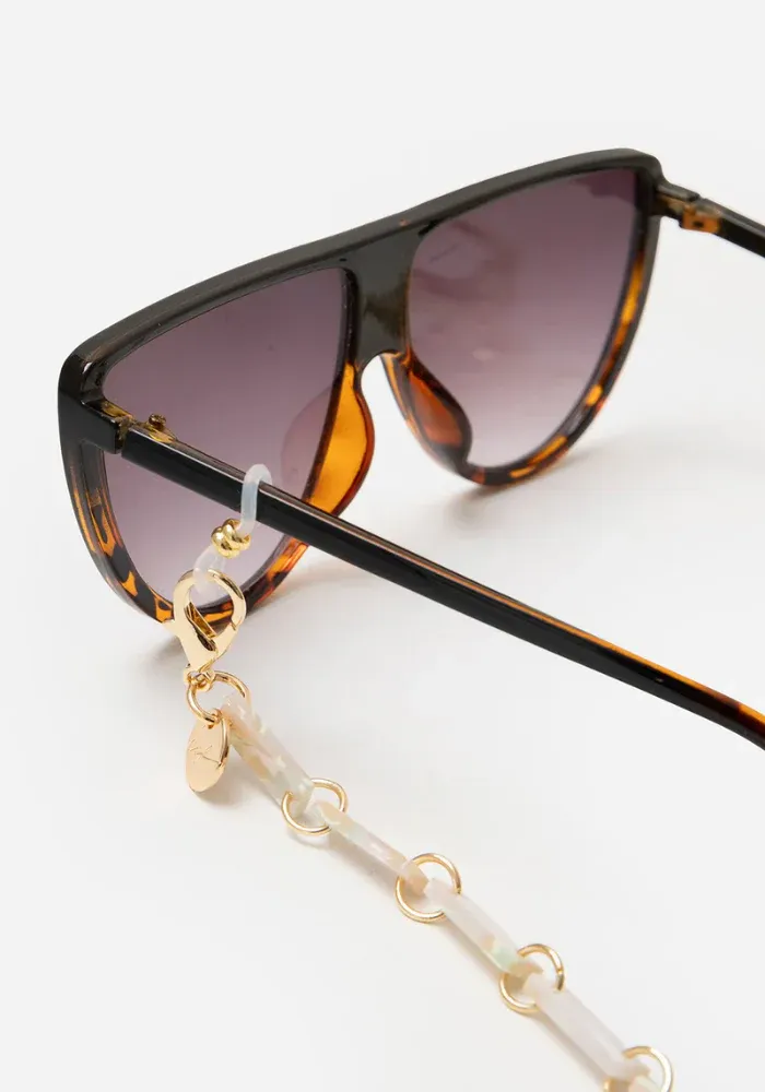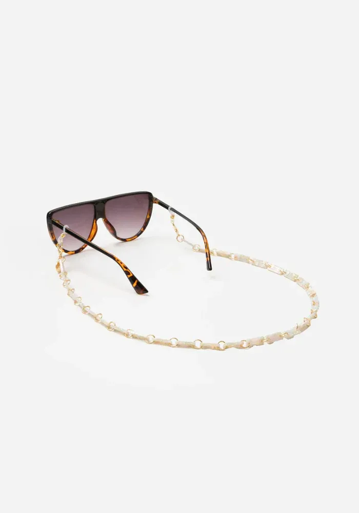 Chaîne de lunettes Nahara beige de 72 cm, composée de maillons rectangulaires blanc nacré.