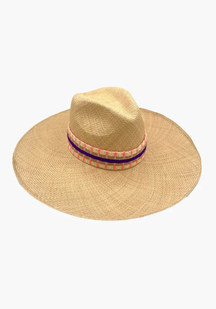 Chapeau Bords XXL Bande Violette Et Corail