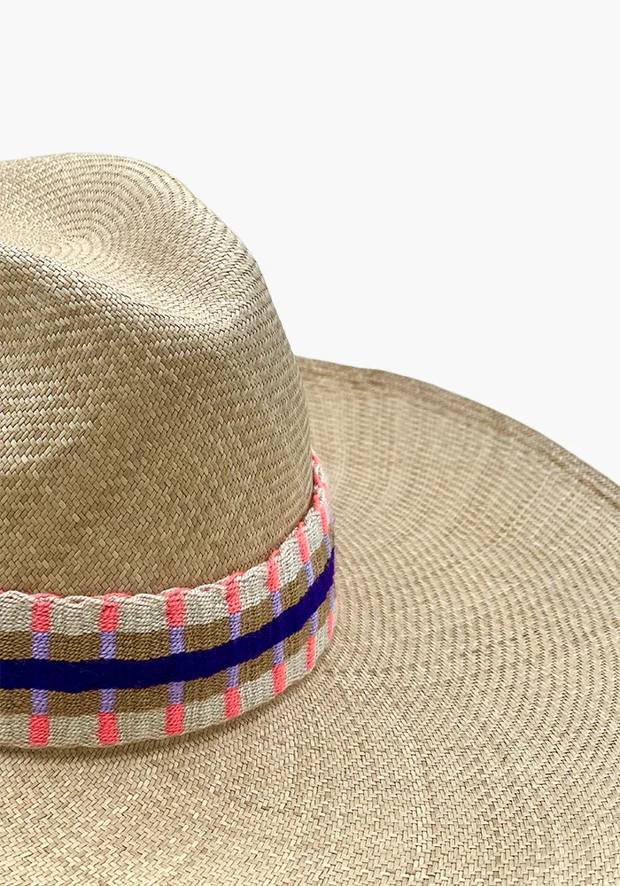 Chapeau large en fibres naturelles d’iraca avec une bande en coton tissé.
