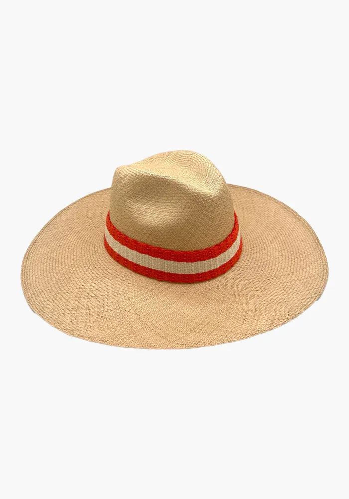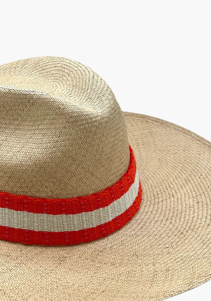 Chapeau large en fibres naturelles d’iraca avec une bande en coton tissé.