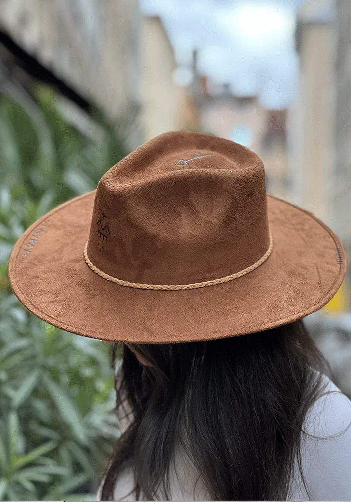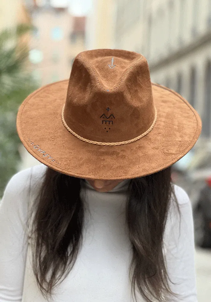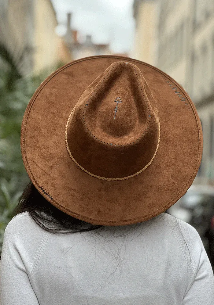 Chapeau The Wild en suède effet daim avec différents motifs et une tresse.