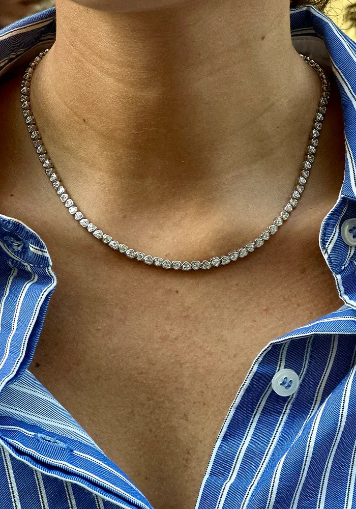 Le collier Kory est orné de plusieurs cœurs en strass sertis.