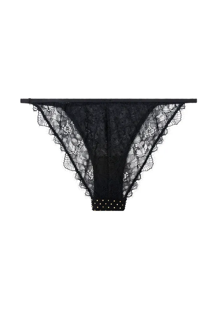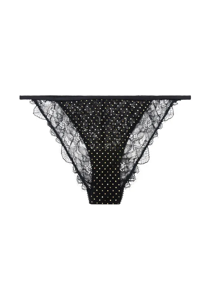 Culotte Wild Rose noire en dentelle avec des pois dorés.