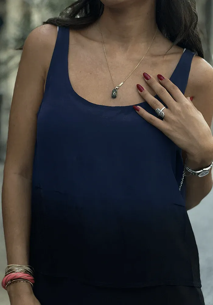Débardeur bleu nuit en tie and dye avec des fines bretelles.