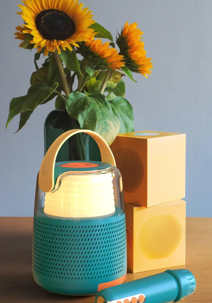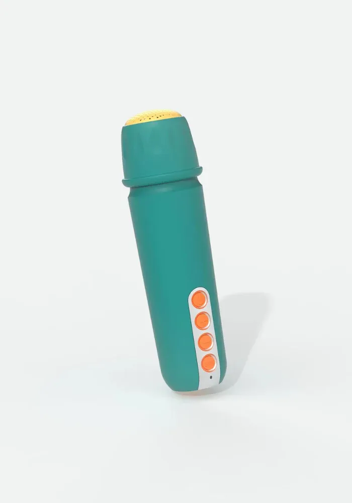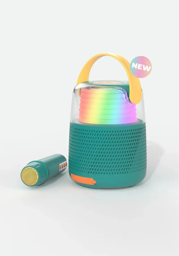 Enceinte et karaoké verte en bluetooth lumineuse avec un micro aux effets sonores.