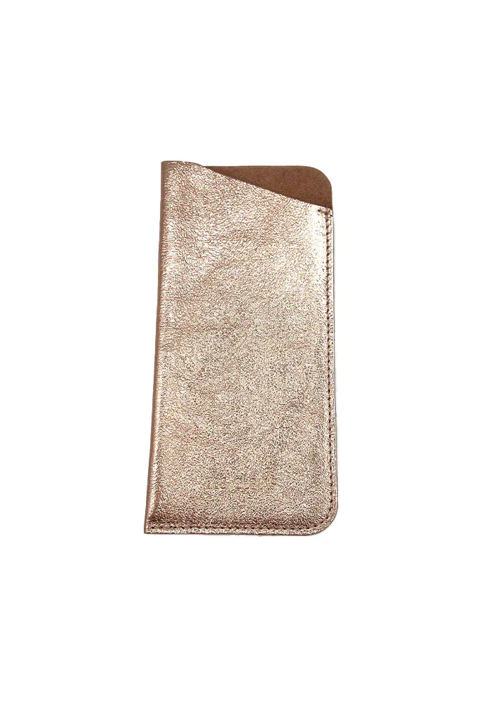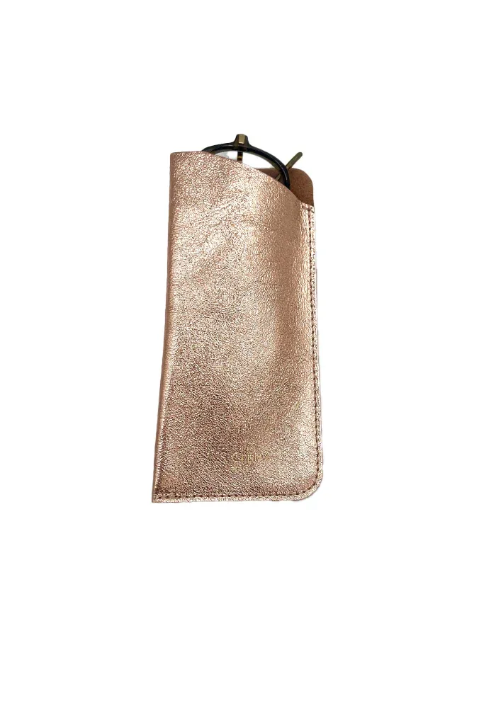 Étui à lunettes en cuir irisé rose gold.