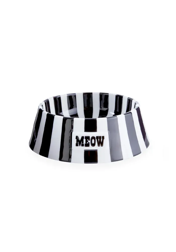 Gamelle pour chien Vice Meow en porcelaine rayée noir et blanc.