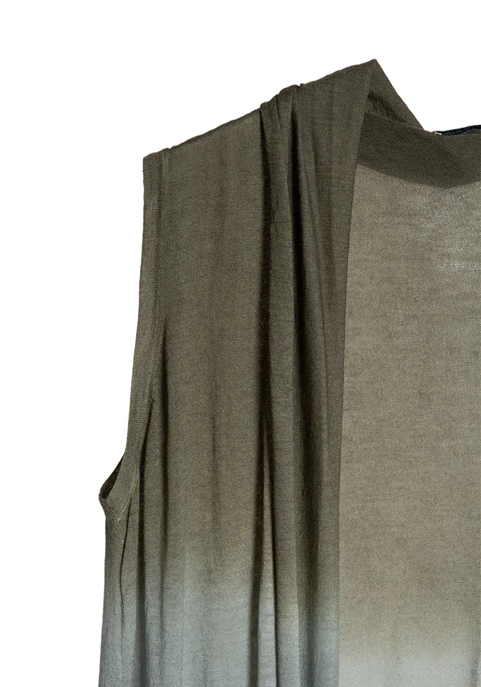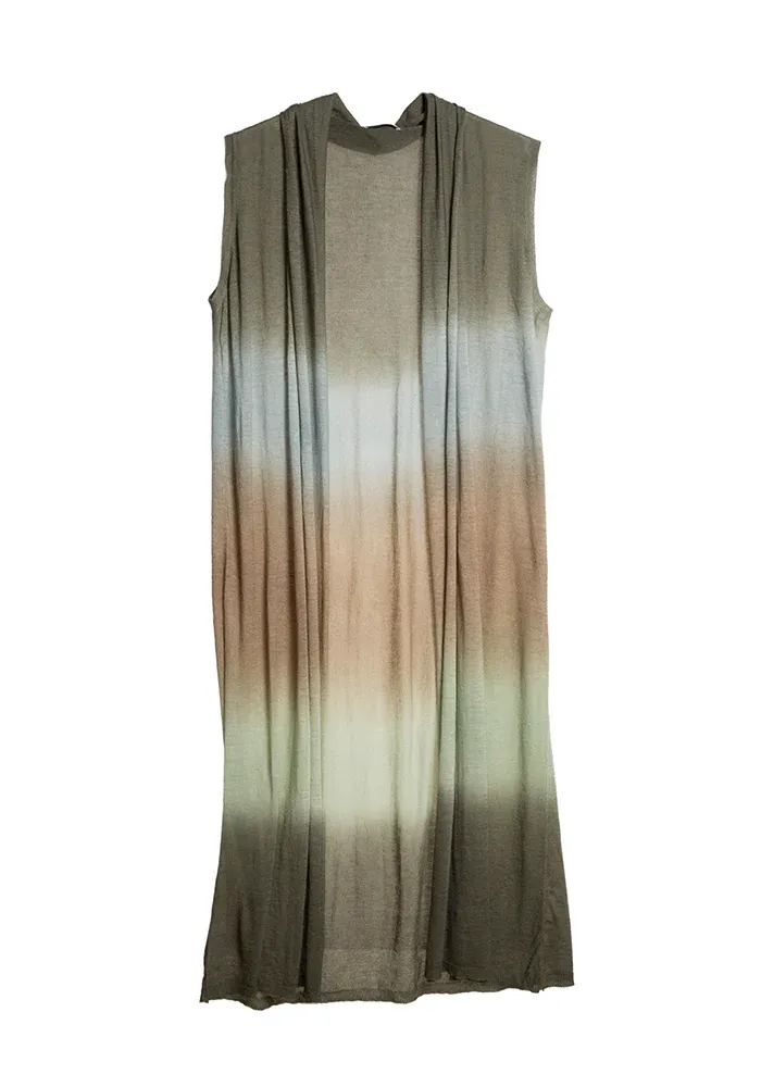 Gilet Long Coat Sleeveless en cachemire dégradé sans manche.