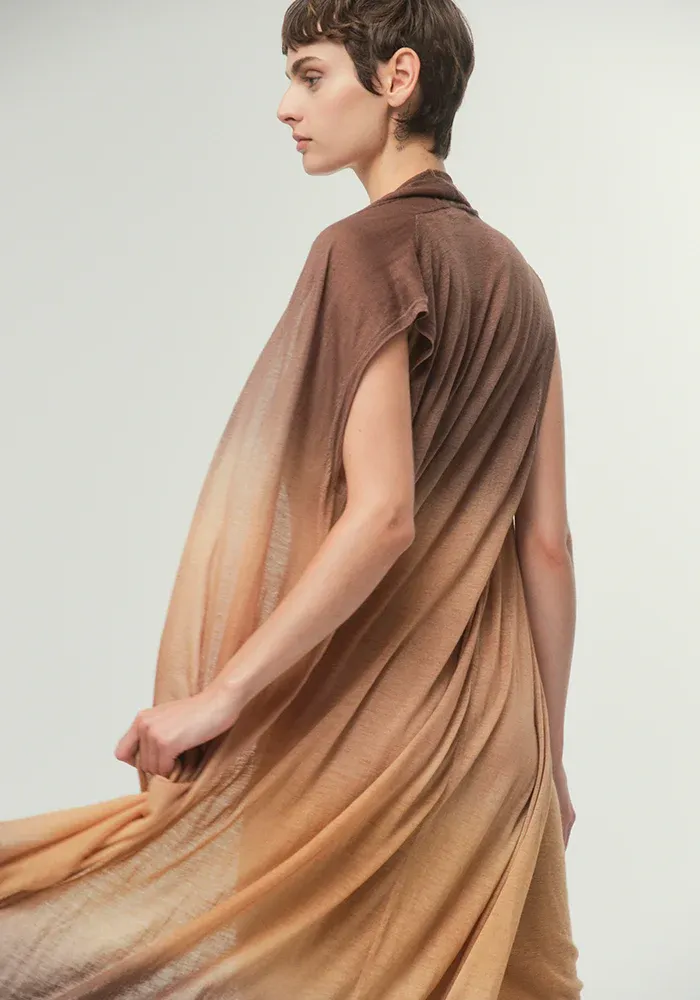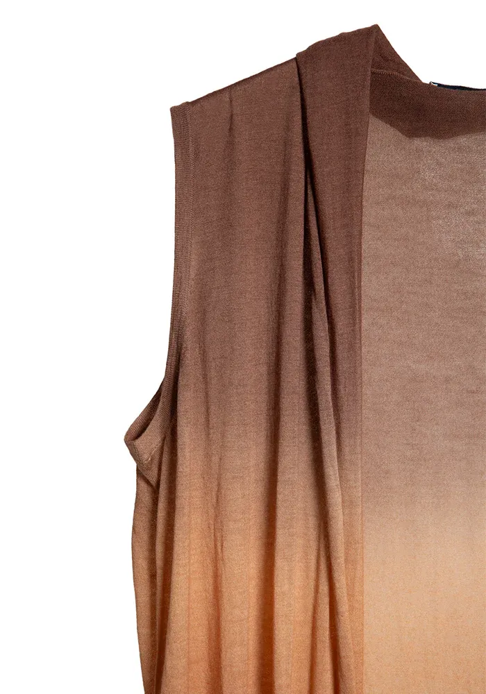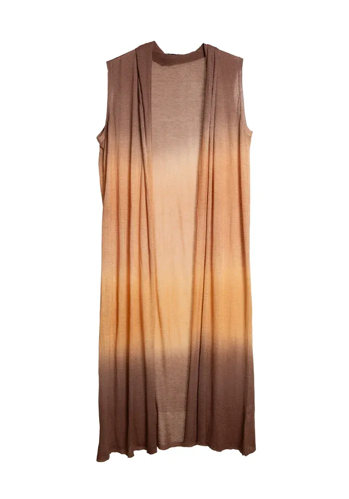 Gilet Long Coat Sleeveless en cachemire dégradé sans manche.