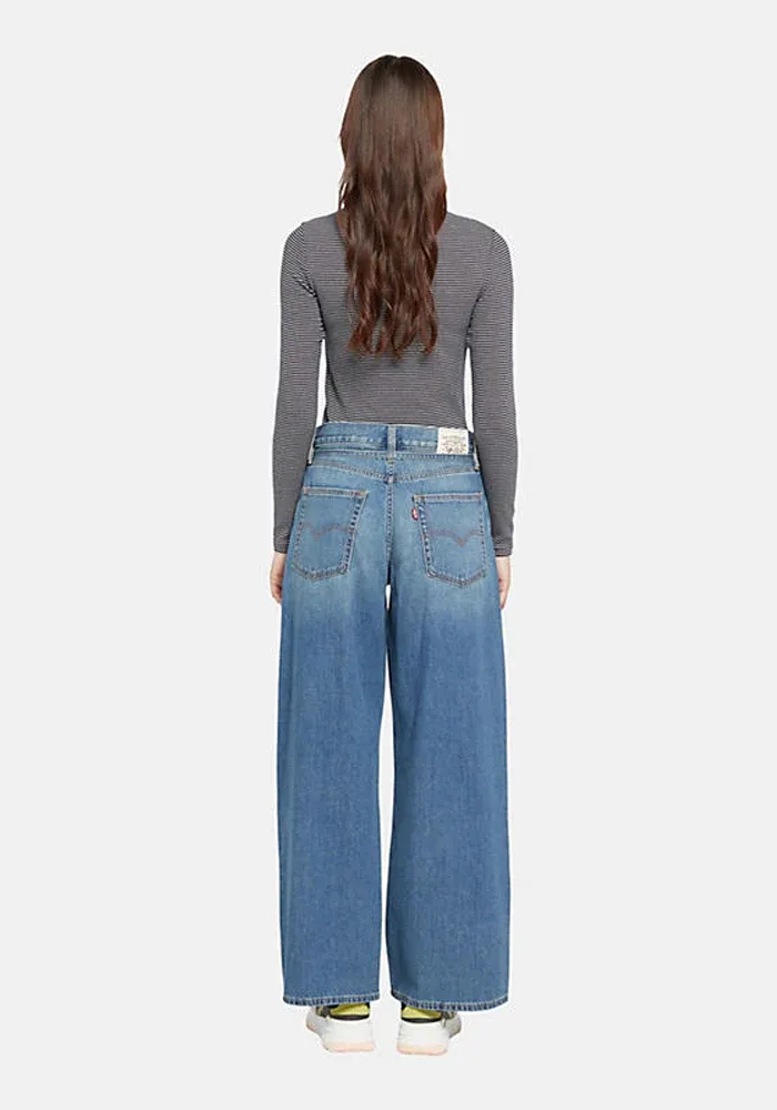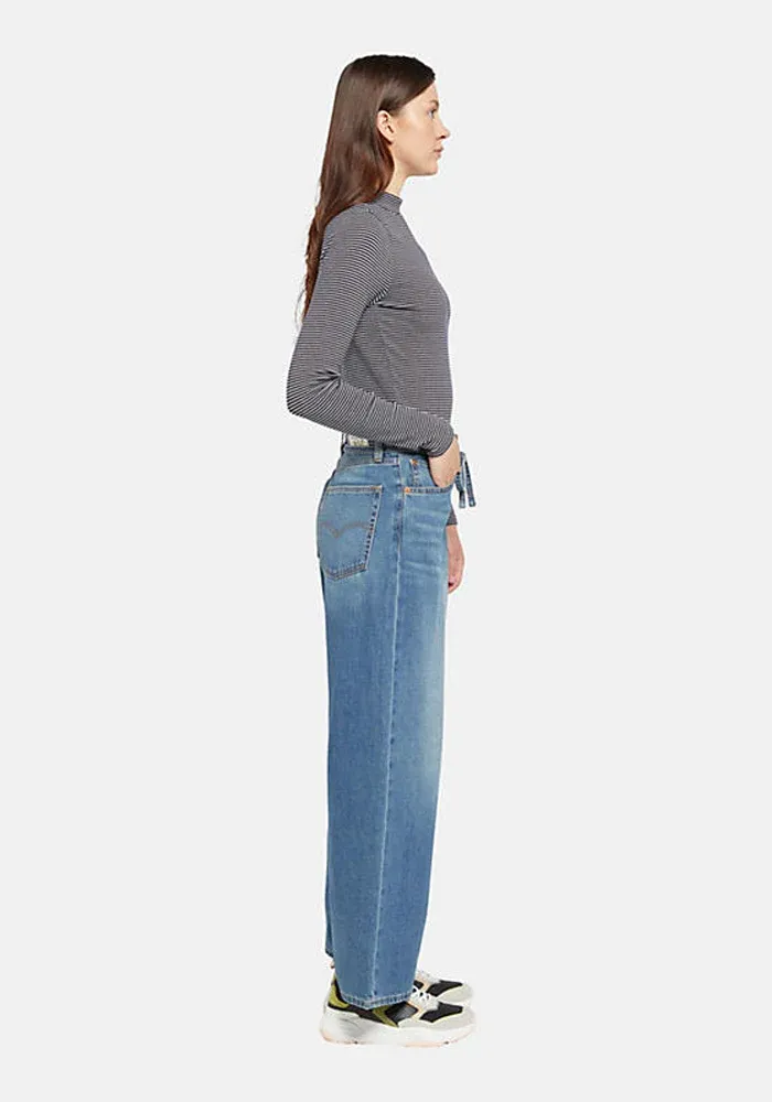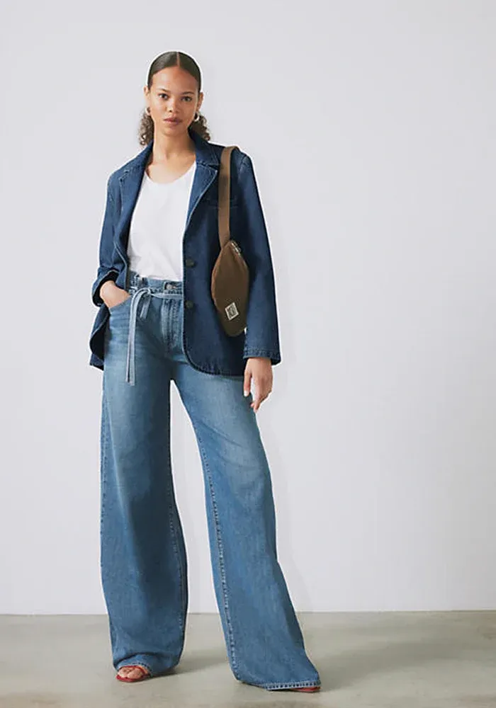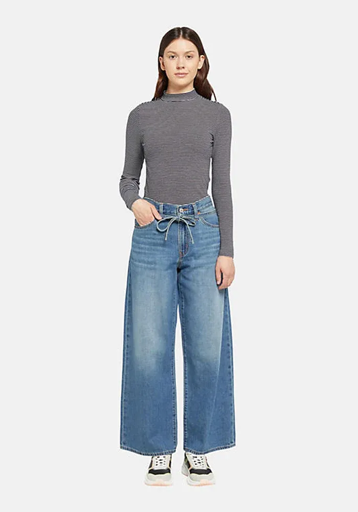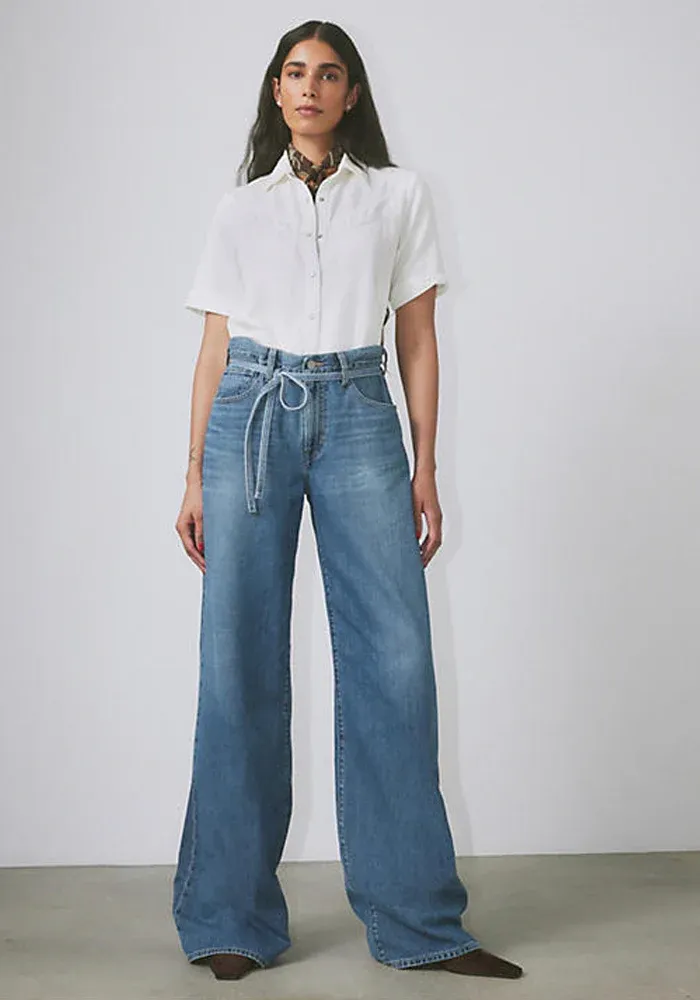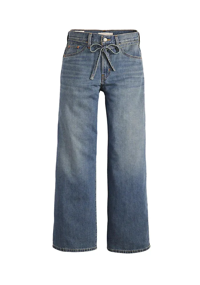Jean XL Straight Stop Flaxing avec une ceinture fine à nouer à la taille.
