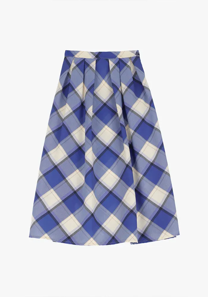 Jupe longue ample avec des carreaux bleus.