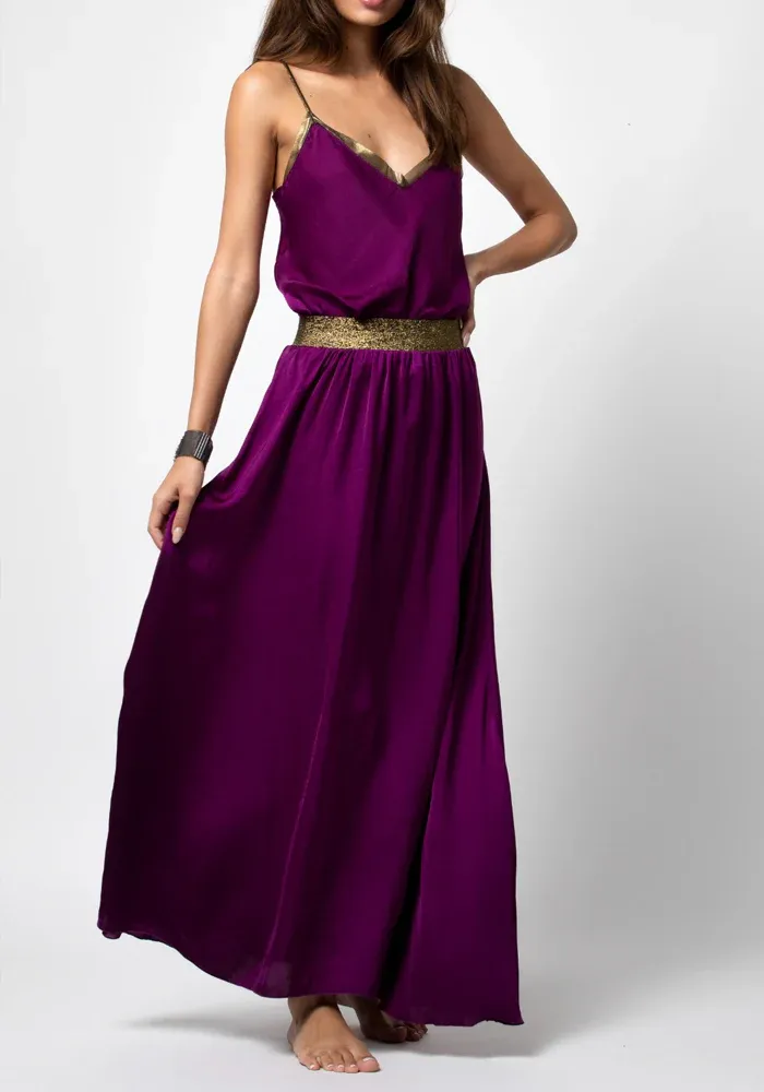 Jupe Pep longue avec un élastique en lurex doré à la taille.