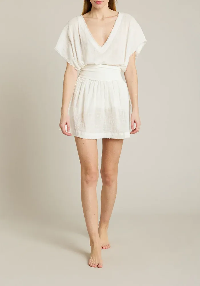 Jupe Sainte Maxime courte avec une finition brute sur le bas.
