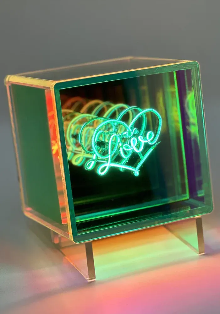 Lampe Message In The Box carrée en plexiglass multicolore et rechargeable.