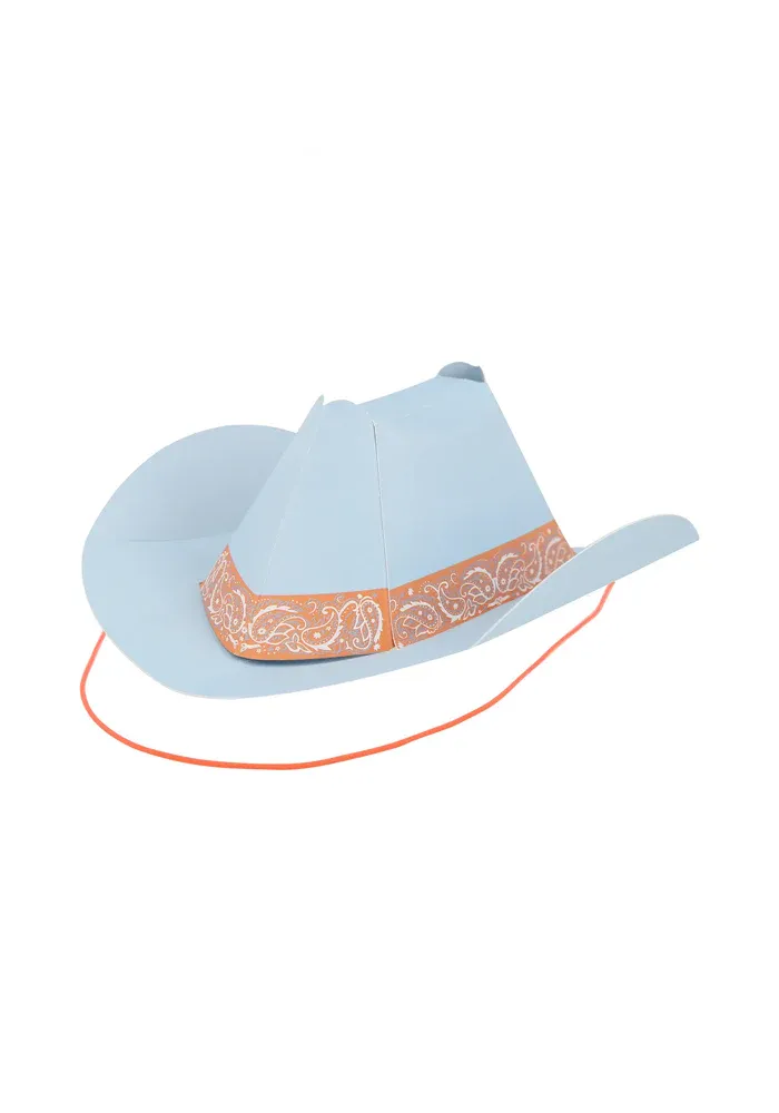 Lot de 8 chapeaux de cowboys en carton coloré.