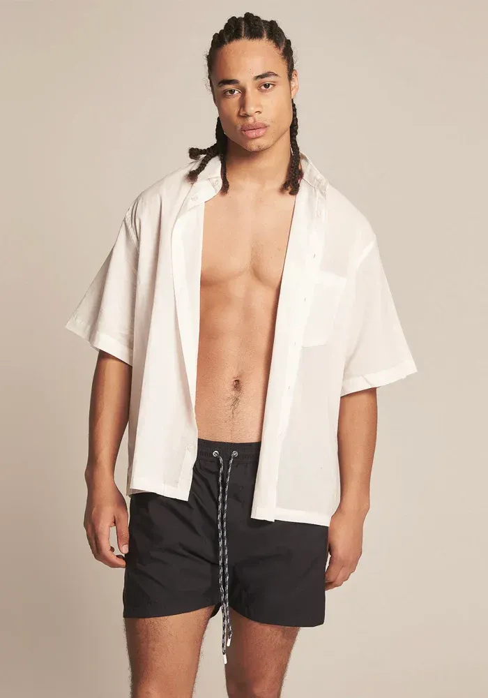 Maillot de bain Happy 21 avec un cordon à la taille et une poche zippée réversible sur le côté.