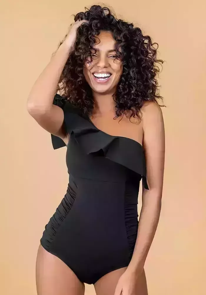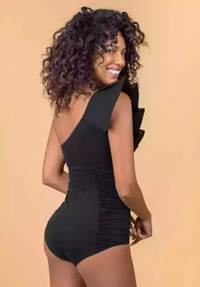 L’épaule dénudée apporte une touche de sensualité et de sophistication à l’ensemble. Elle dévoile subtilement votre peau, créant un effet visuel séduisant. Cette asymétrie élégante donne au maillot de bain une allure moderne et chic, attirant les regards avec subtilité.
