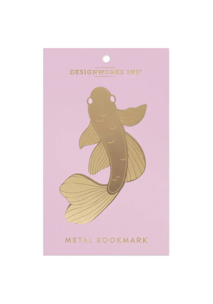Marque page en laiton doré en forme de carpe koï.