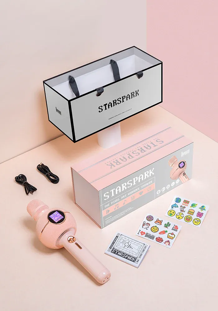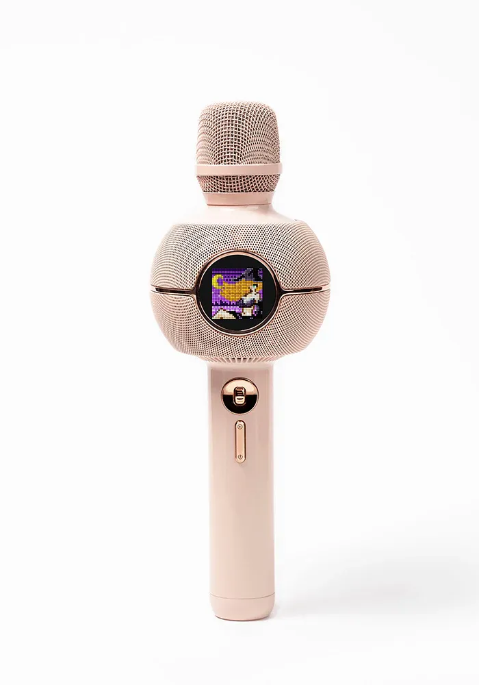 Le micro karaoké possède de multiples fonctionnalités. Il possède un écran pixel qui vous permettra de mettre l’option de votre choix depuis l’application mobile connectée.