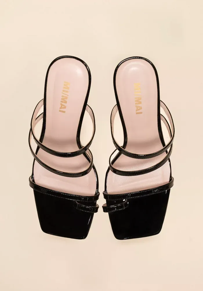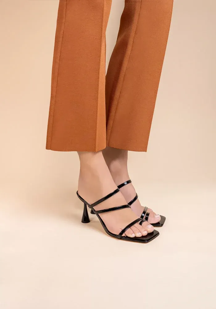 Mules à talons Sorento avec 4 brides dont une autour du gros orteil et un bout carré.