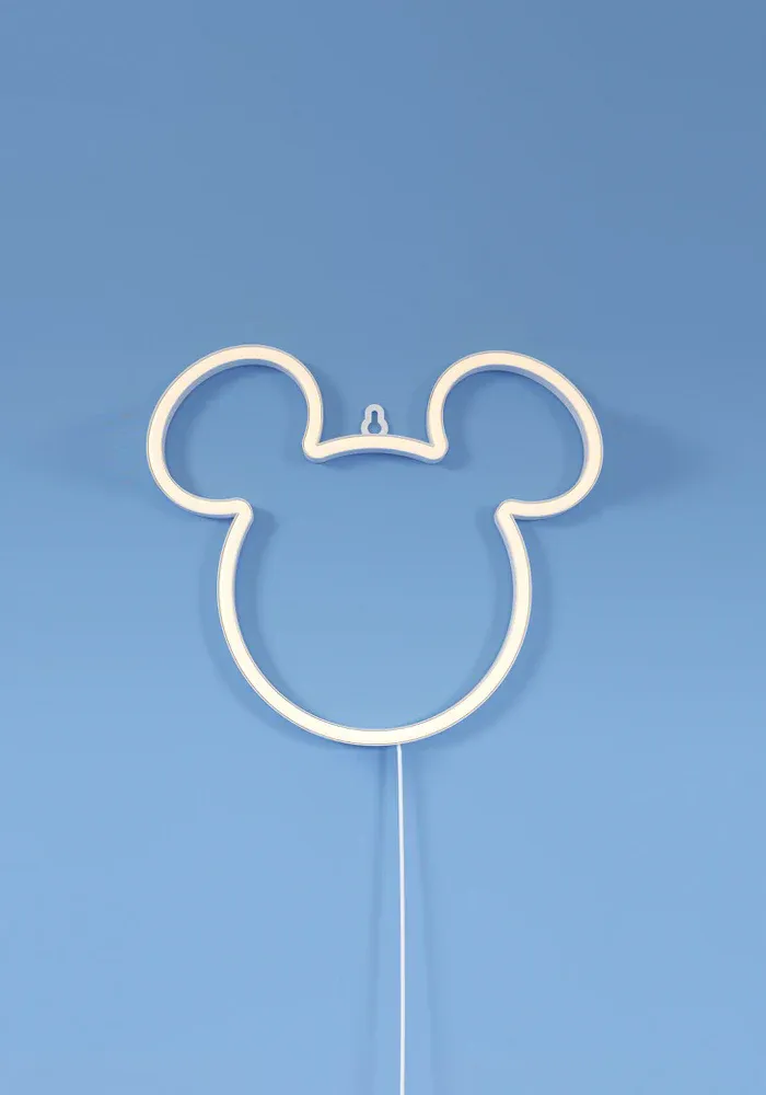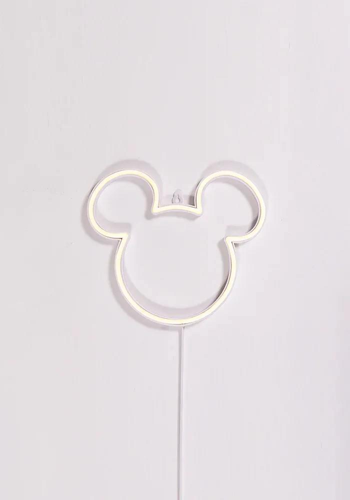 Néon Mini Mickey avec le contour de sa tête entouré d’un néon jaune.