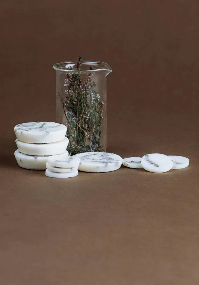 Les rondelles de cire de soja sont un élément de design décoratif qui peut être placé dans n’importe quelle pièce, étagère ou tiroir. Les ronds peuvent également être utilisés dans le brûleur de pot-pourri.