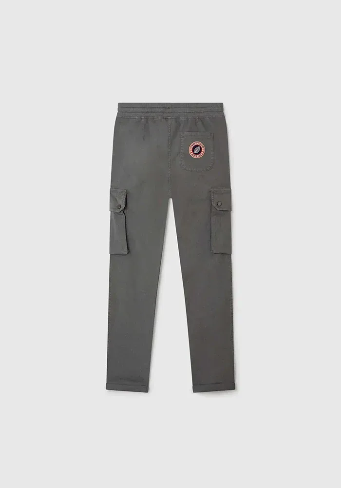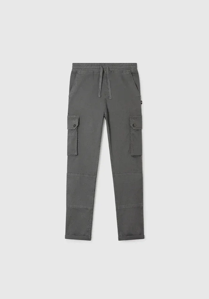 Pantalon pour enfant Warrior Wide gris foncé avec un cordon à la taille, une coupe ample et deux poches sur les côtés pour un effet cargo.