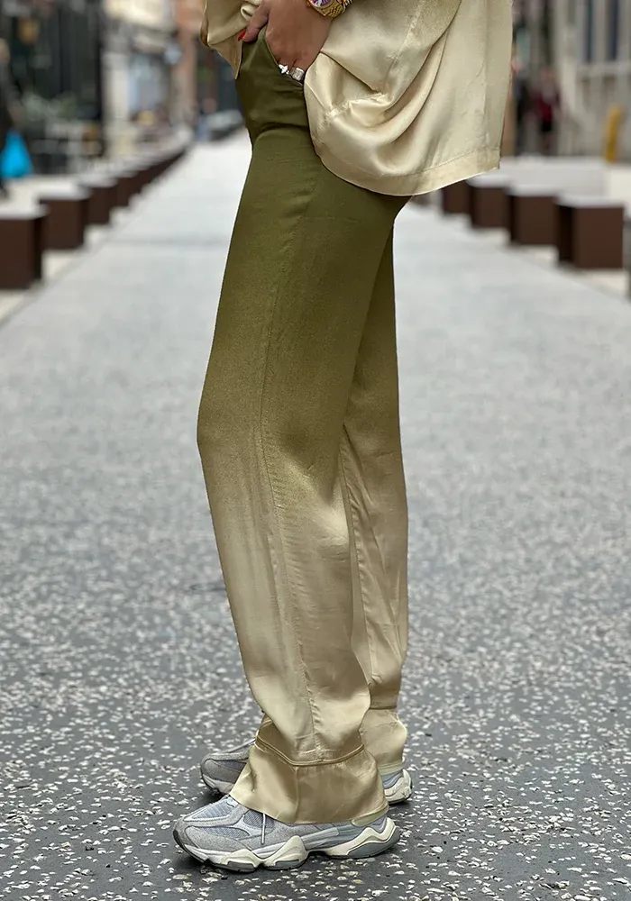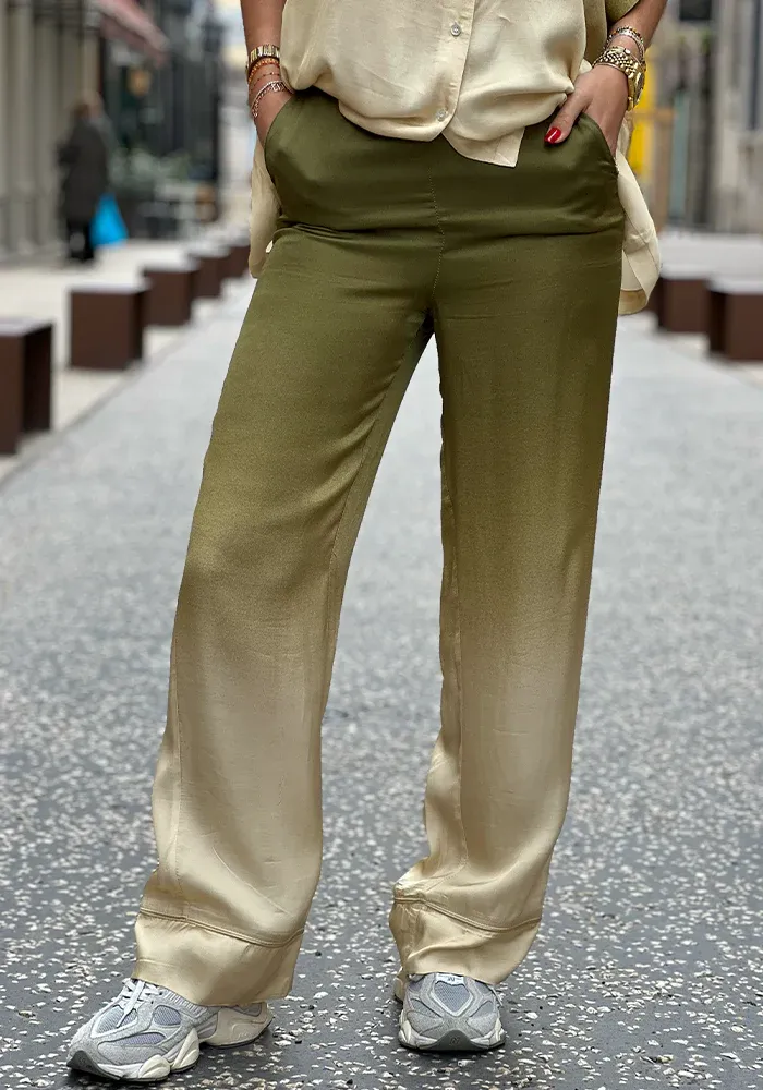 Pantalon Leonie droit avec une ceinture élastique avec un zip sur le côté et un imprimé tie and dye.
