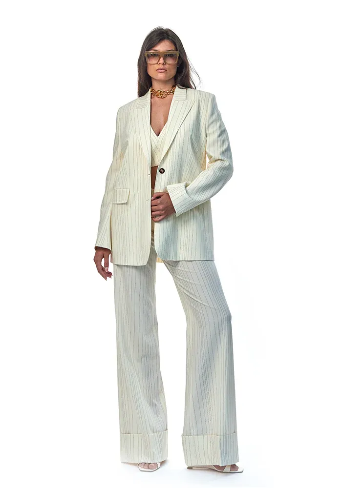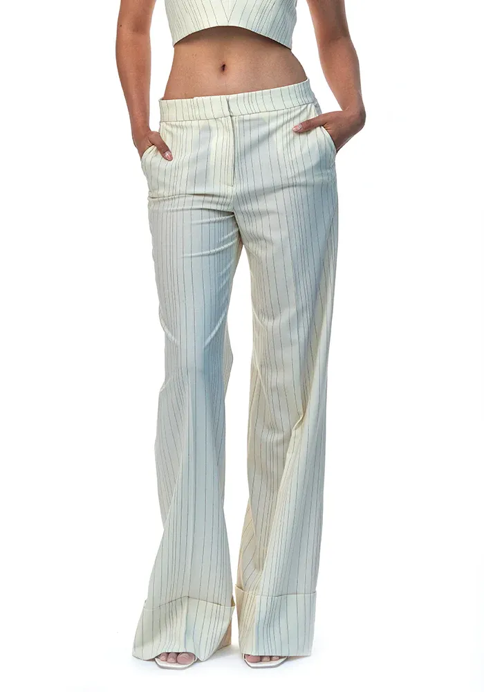 Pantalon Norah large à pinces écru avec des rayures verticales.