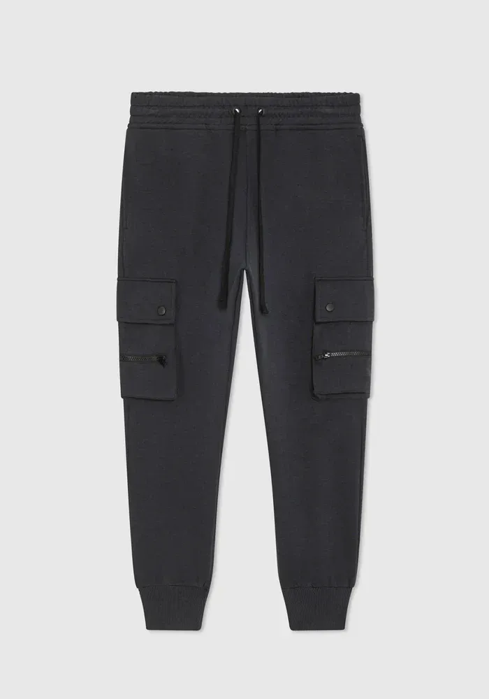 Pantalon Treilly 23 jogging style cargo avec un cordon de serrage plat, multi-poches zippées avec des boutons pressions.