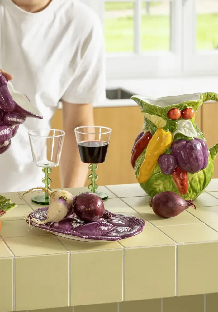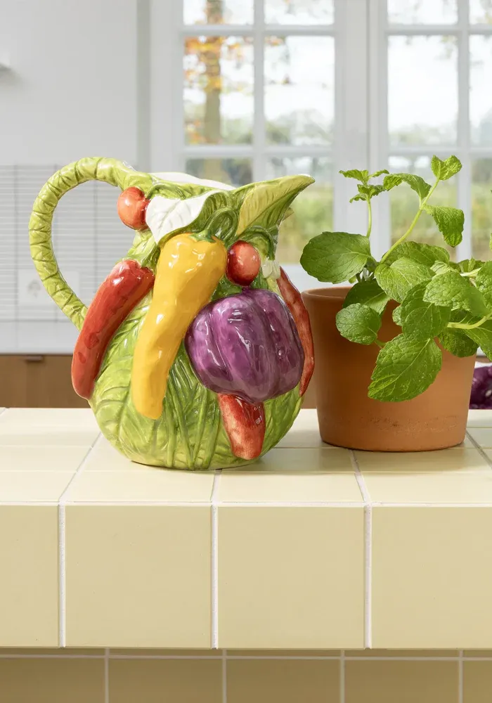 Pot à eau Legume Pepper en dolomite avec des légumes en 3d.