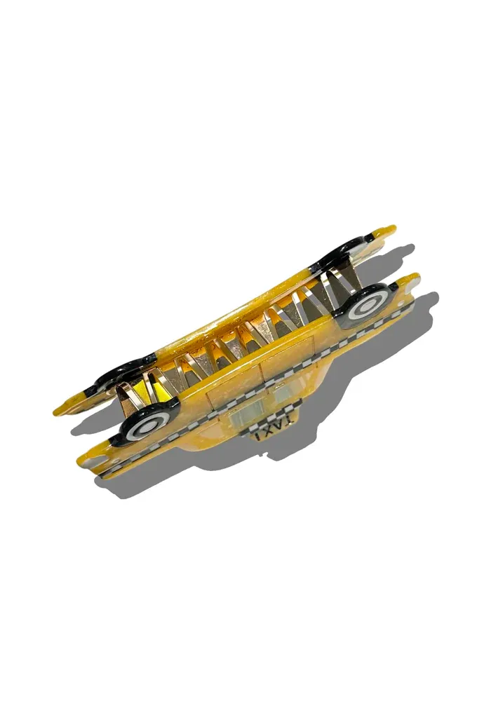Pince à cheveux en forme de taxi jaune peinte à la main.
